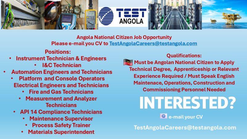 A TEST Angola abre (11) Vagas para o preenchimento imediato