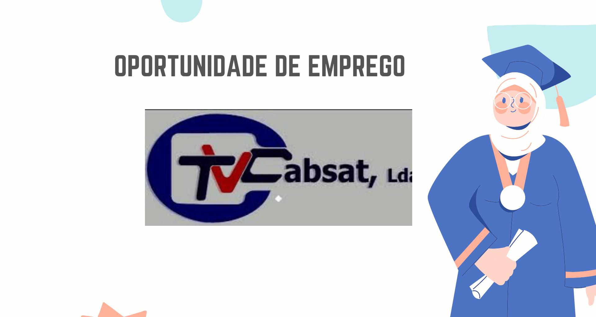 As candidaturas deverão ser enviadas, acompanhadas do Curriculum, Diplomas, Certificados Académicos, para o e-mail: administracao@tvcabsat.ao